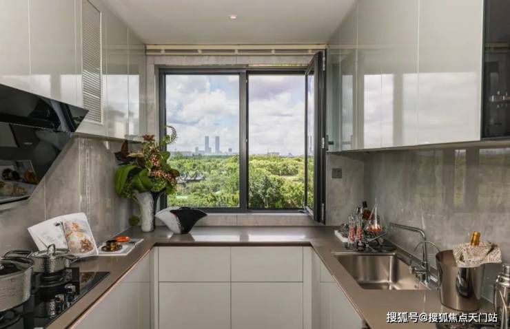 在全卧飘窗的基础上,张江金茂府 连厨房都有飘窗赠送 ,加上南向大阳台,丰富的灵动空间极大的提升了实际使用面积!