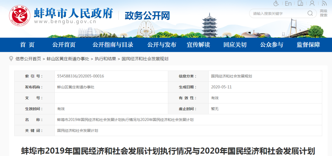 近日,蚌埠市政府发布了《蚌埠市2019年国民经济和社会发展计划执行情况与2020年国民经济和社会发展计划》
