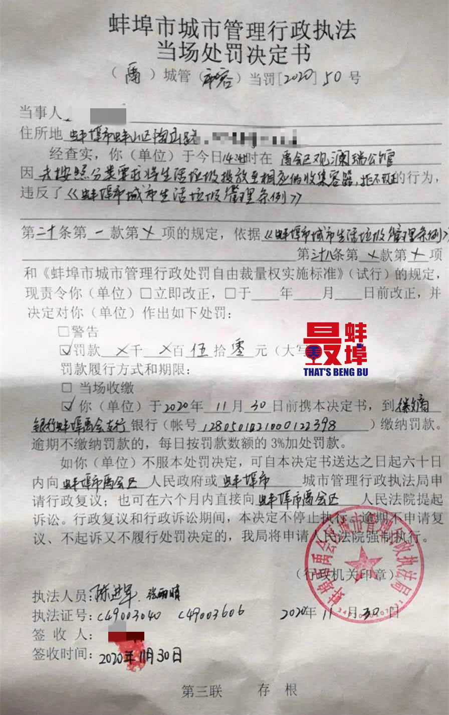 蚌埠开出首张生活垃圾分类罚单,一居民被罚50元!