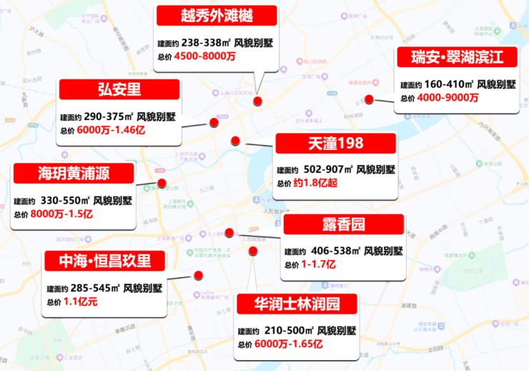 臻稀地段遇上鼎流产品,风貌别墅占据了上海顶豪塔尖位置。黄浦区风貌别墅单价25-30万/㎡;北外滩和东外滩滨江风貌别墅21-24万/㎡;总价则以大几千万起,甚至上亿。